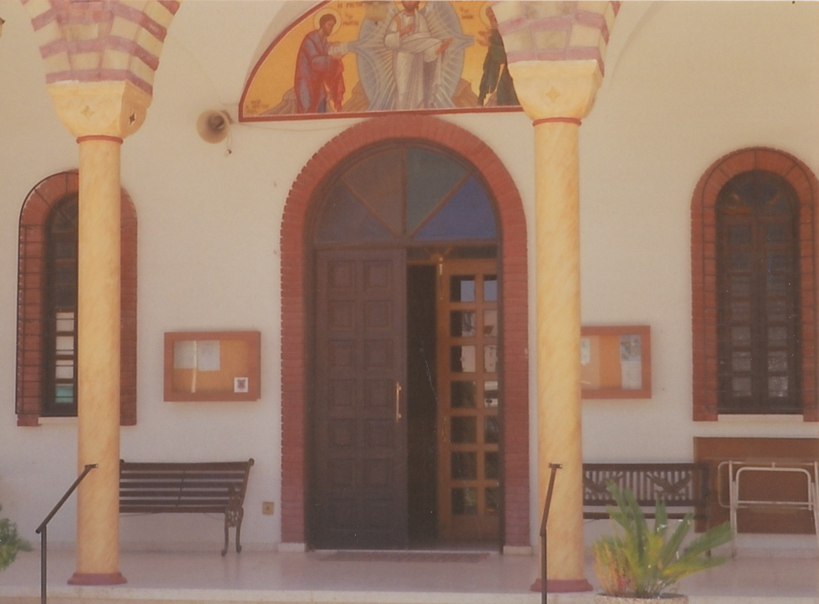 Marbling on columns on the outside of Chrysosotiros church in Pera Chorio.
