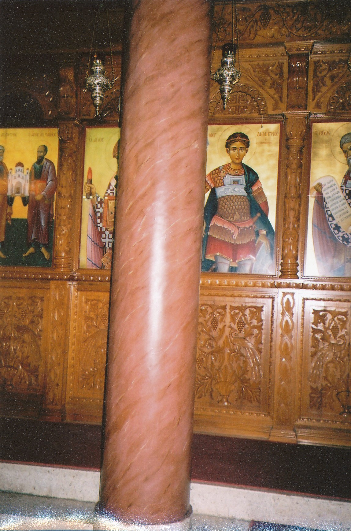 Marbling on columns on the inside of Chrysosotiros church in Pera Chorio.