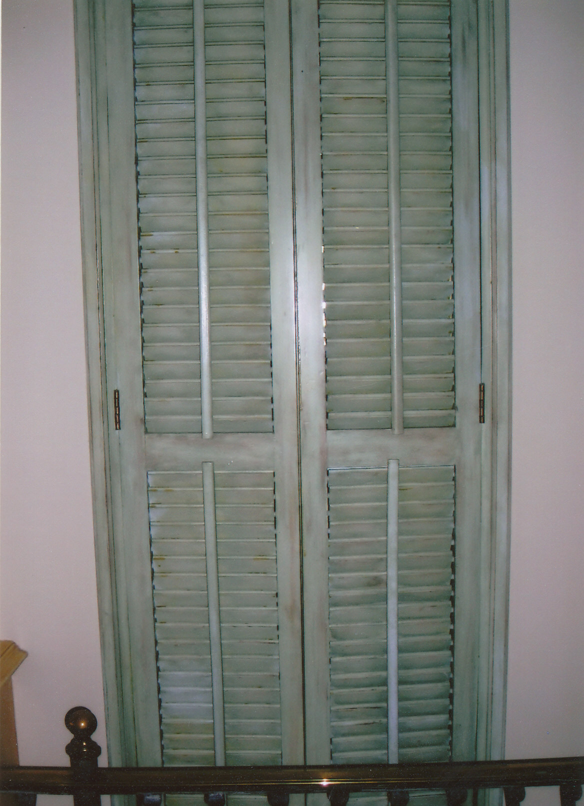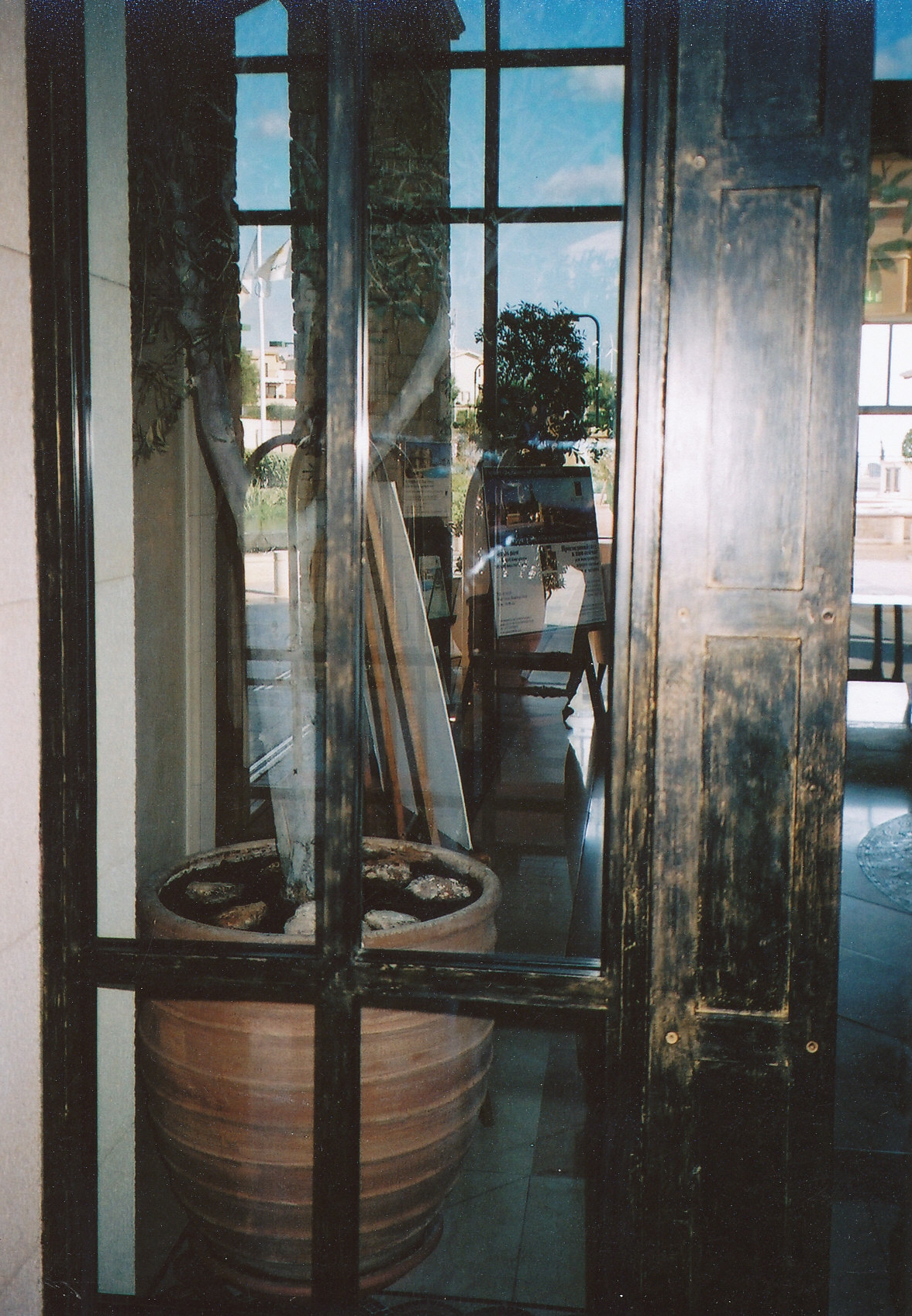 "Antiquing" special painting technique on wooden doors of Cyprus Hilton restaurant.