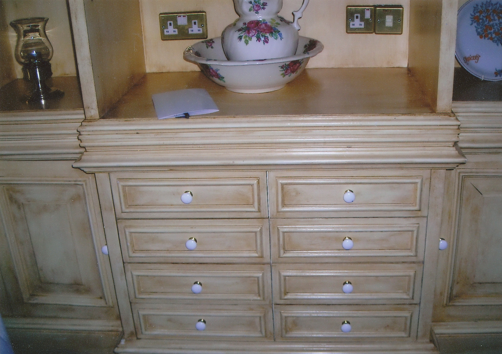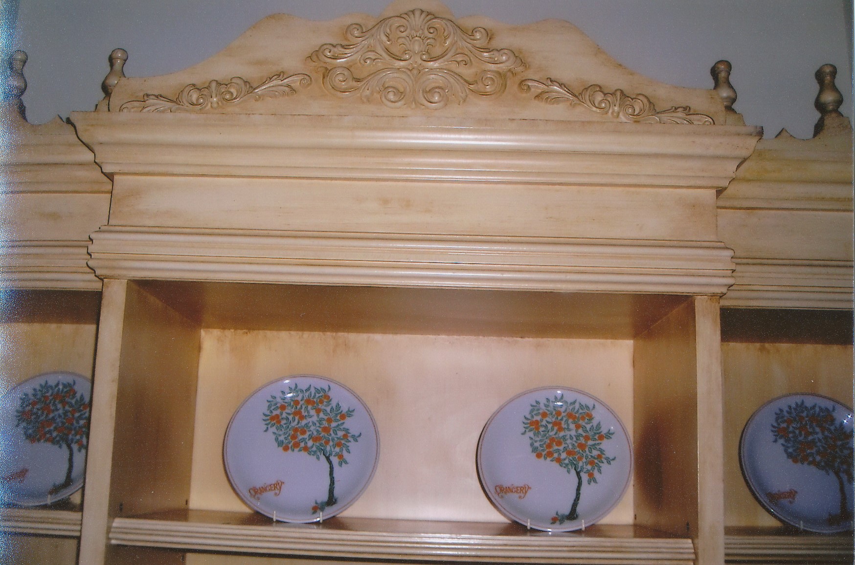 "Antiquing" special painting technique on wooden furniture at Hilton Hotel VIP restaurant.
