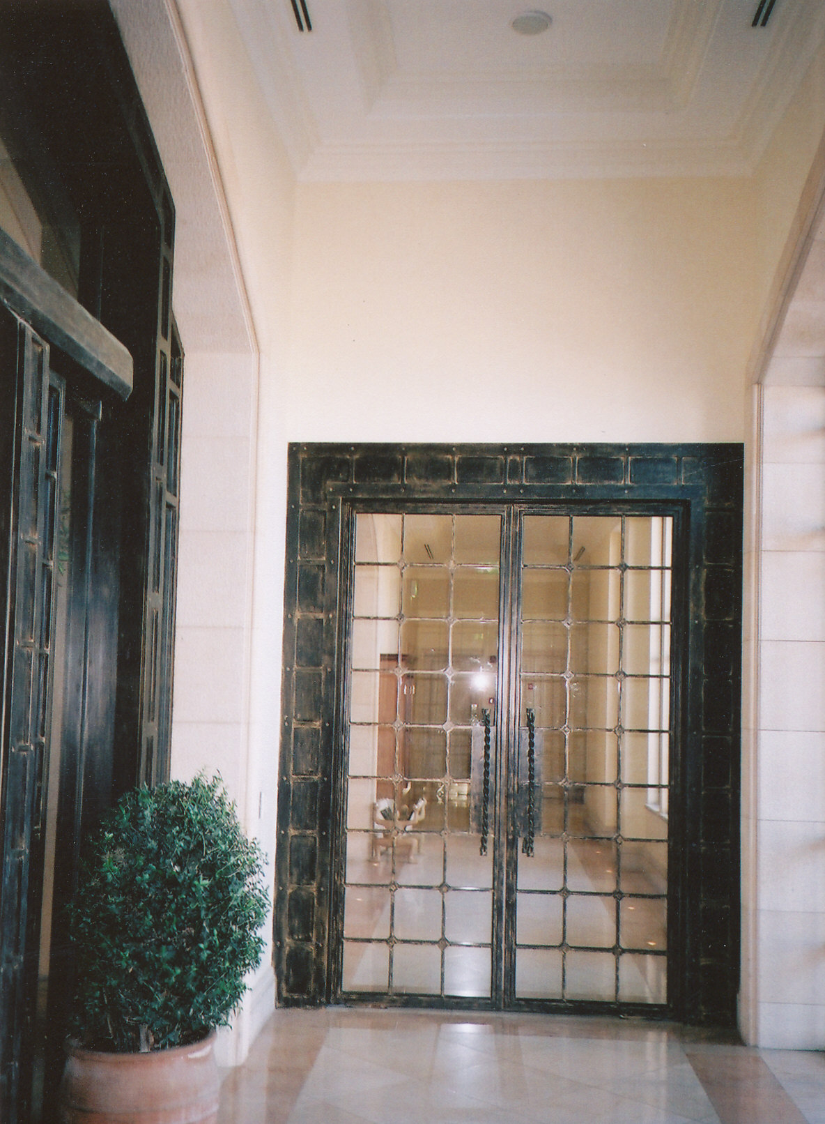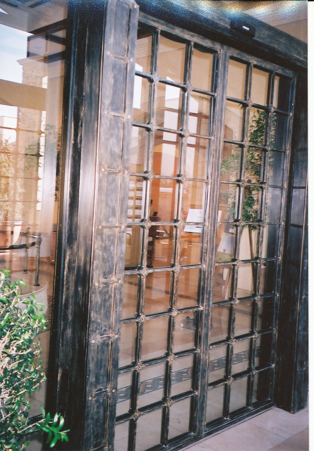 "Antiquing" special painting technique on iron doors of Intercontinental Hotel entrance doors.