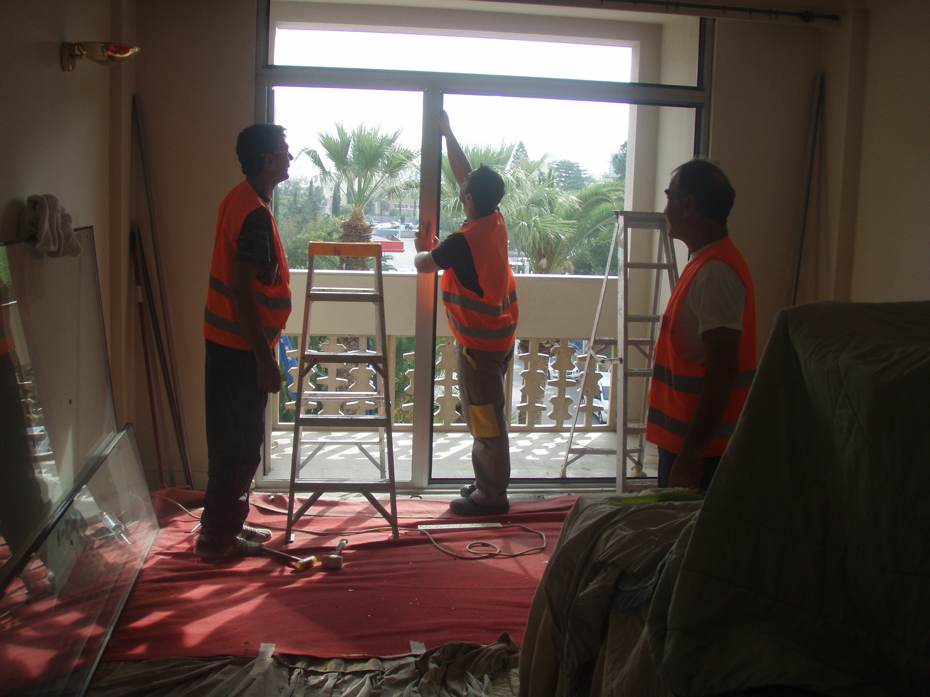 Replacing the aluminium balcony doors of Hilton Cyprus.